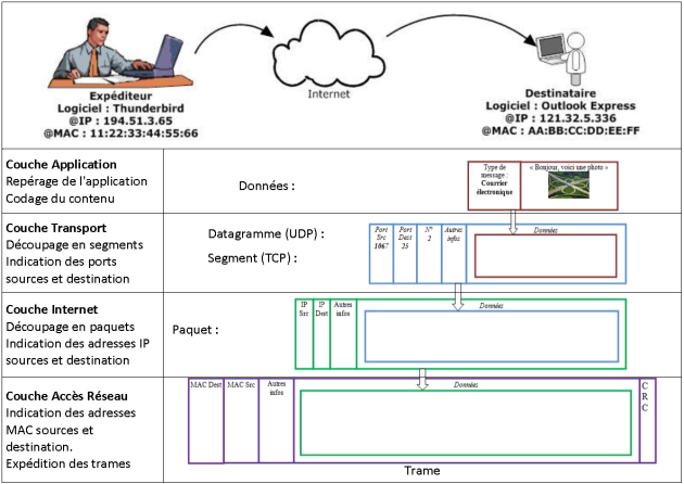 Exemple : Un utilisateur veut envoyer un message (mail) conformément au schéma ci-dessous.