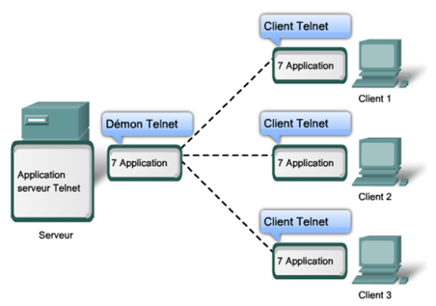 Les serveurs comportent généralement plusieurs clients demandant des informations en même temps. Par exemple, un serveur Telnet peut comporter de nombreux clients demandant à se connecter à ce serveur. Ces requêtes de client individuelles doivent être traitées simultanément et séparément pour que le réseau fonctionne correctement. Les processus et les services de la couche application sont assistés par les fonctions des couches inférieures pour gérer correctement les conversations multiples.